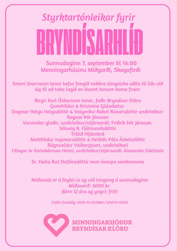 Styrktartónleikar fóru fram 7.sept 2025 - einvalalið Skagfirðinga kom fram á tónleikunum ásamt Birgi Karli föður Bryndísar Klöru heitinnar.